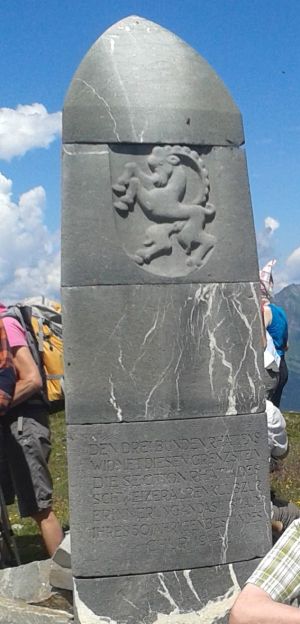 Der Rest geht zum Dreibündenstein und macht am Denkmal eine weitere Rast. Am Schluss können wir wieder mit dem Sessellift zu Tale schweben.
