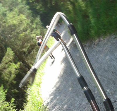 Nach einer weiteren Rast im Sonnenschein beim Bernhardseck geht es nochmals 750m abwärts nach Elbigenalp. Nicht alle Stöcke überstehen diese Belastung.