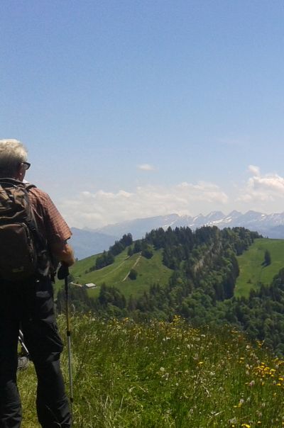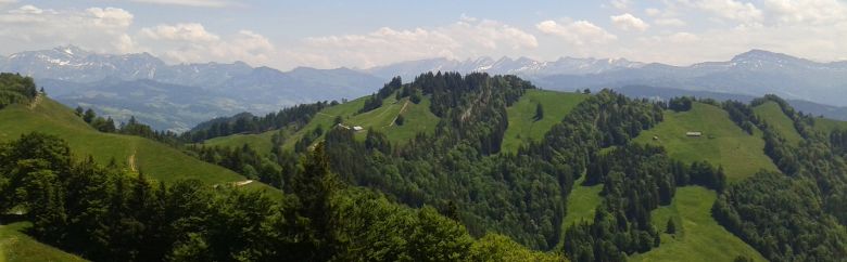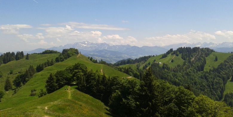 In Ausschnitten ist manchmal der Zürichsee zu sehen.Nach dem Schnebelhorn mit 1292m überqueren wir noch den Chümibarren mit 1314m als höchste Erhebung auf unserem Weg.