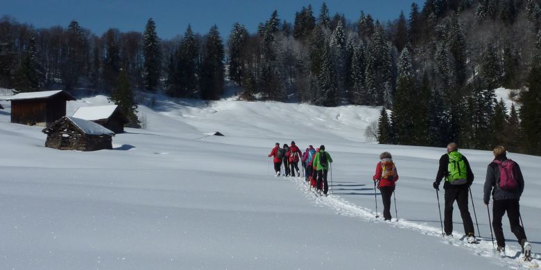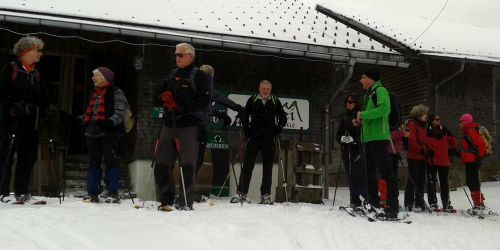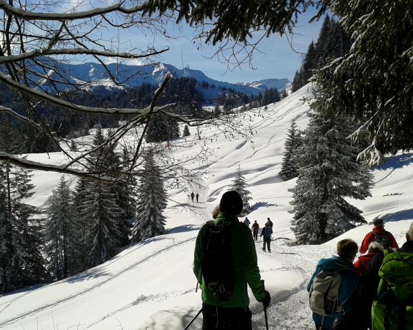 Bald geht es ordentlich bergauf und immer wieder werden kleine Pausen eingelegt. Im oberen Teil trifft man auf die Skipiste und wir gehen am Rand zur Höchälpele Hütte.