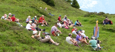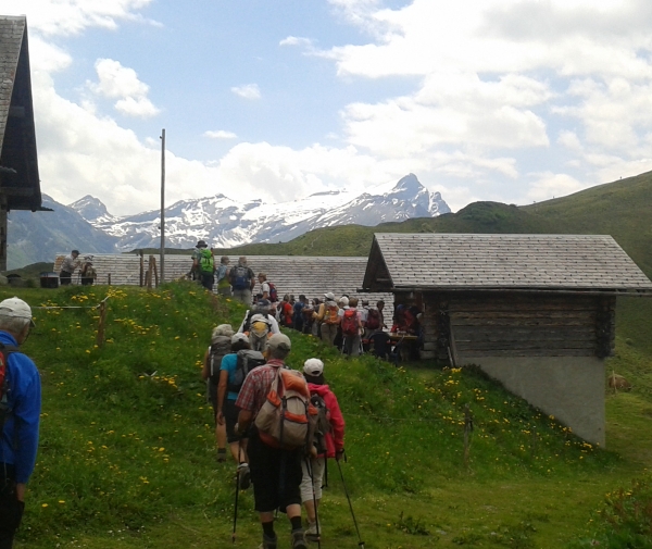 Unterwegs bieten sich für A und B-Gruppe herrliche Rundblicke z.B. auf den Piz Beverin, ins Safiental und in die Schweizer Berge bei Flims, Laax.