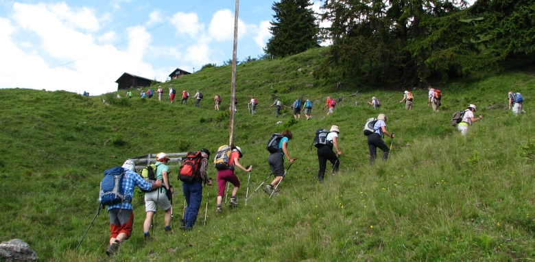 Mit 32 Wanderern in der A-Gruppe bilden wir eine ordentlich lange Schlange.