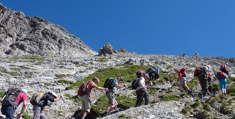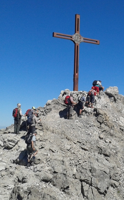 Beim Rundblick reihte sich ein ein bekannter Gipfel an den anderen. Unser Tourenleiter Sigbert nennt uns alle mit Namen und Höhenangabe.
