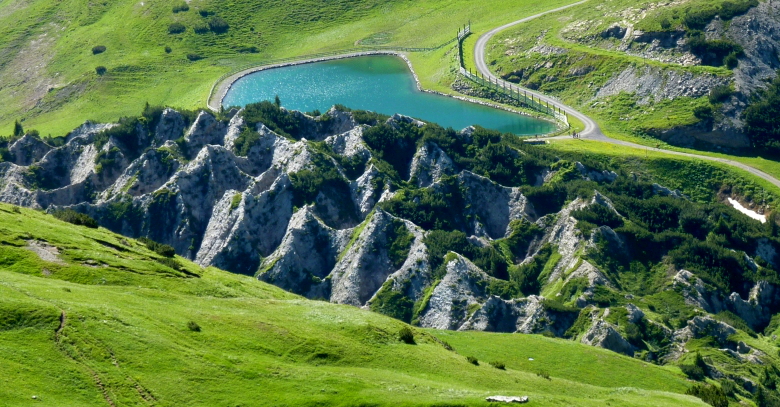 | Wegepunkte A: | Gipslöcher (2025), Mohnenfluh (2544), Mohnensattel, Bregenzer Ach, untere Auenfeldalpe, Körbersee, Kalbelesee, Hochtannbergpass | ||
