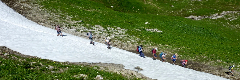 Vor dem eigentlichen Gipfelanstieg der nochmals steiler ansteigt musste ein breites Schneefeld überquert werden.