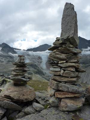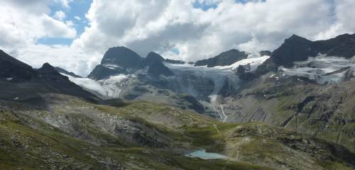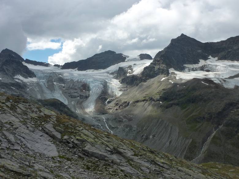 Bei angenehmen Temperaturen und im Sonnenschein wird gerastet. Ab dem Abstieg zur Wiesbadener Hütte wurde es deutlich frischer.