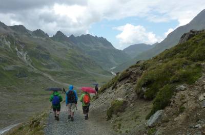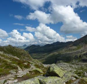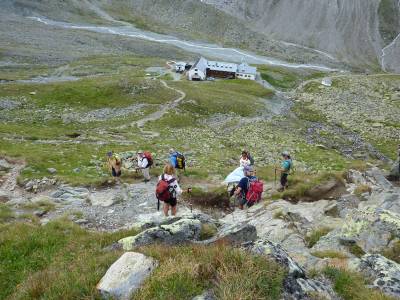 Der Aufstieg zum Radsattel ist ohne besondere Schwierigkeitsgrade zu bewältigen. Im oberen Teil geht es über große Steinplatten und Geröll.