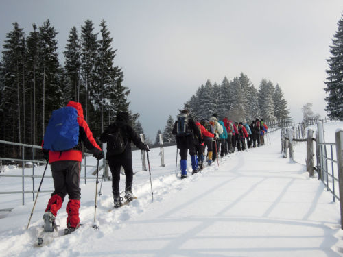 Wir machen nicht zu viele Höhenmeter aber eine lange Strecke für die erste Schneeschuhwanderung der Saison.