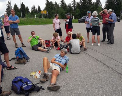 Eine sehr schöne Wanderung bei herrlichem Wetter findet ihren Abschluss bei einem kleinen "Sit-in" auf warmem Asphalt.