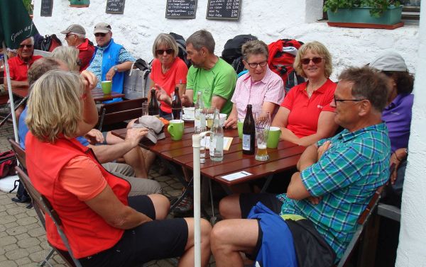 Abwärts geht es teilweise auf einem Fahrweg und alle sind froh am Bus ein kühles Getränk zu finden.