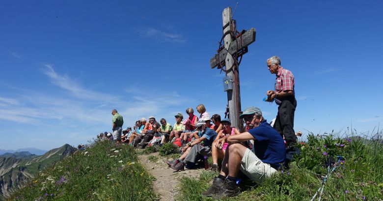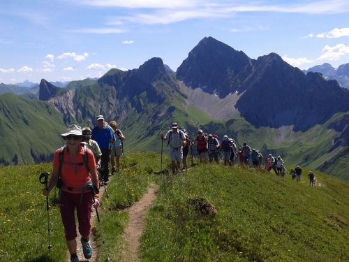 Unterdessen erklimmt die B Gruppe gleich 2 Gipfel. Der Weg führt über das Portlahorn und die Sünser Spitze.