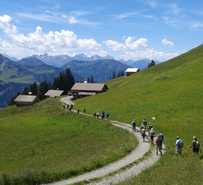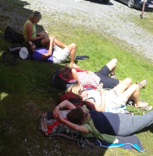 Dieser ist sehr weitläufig und die Mittagsrast findet mitten in schönen Blumenwiesen statt.