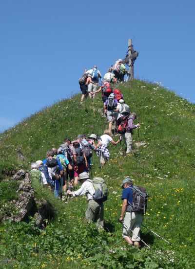 Bei der Hubertuskapelle angekommen entschließen sich alle Teilnehmer der A Gruppe den Gipfel zu erklimmen.