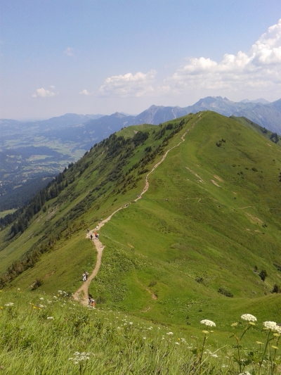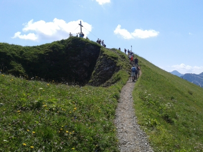 Je mehr wir uns dem Fellhorn nähern kommen uns zunehmend die Pulks der Fellhornbahnfahrer entgegen.