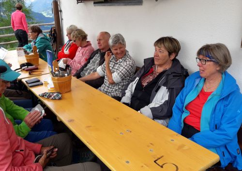 Einige der B-Gruppe kommen uns auf dem Rückweg entgegen. Der Rest ist bereits in der Fendler Alm eingekehrt.