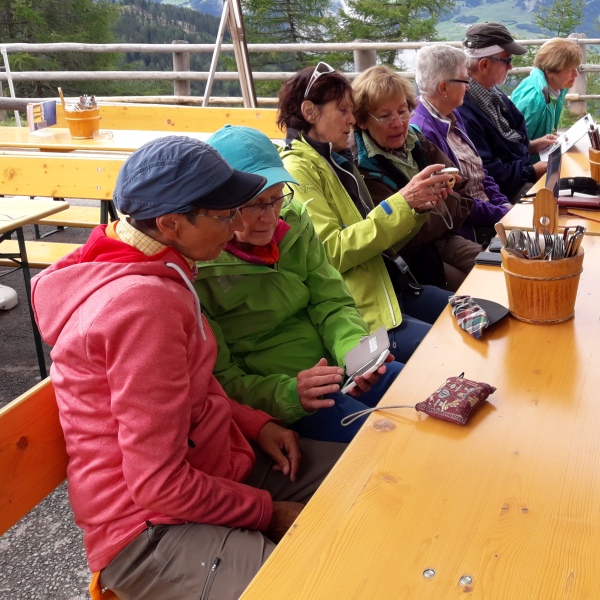 Auch wir legen dort eine zweite Rast ein und geniessen den Sonnenschein. Das Smartphone Fieber hat die Senioren infiziert. Eifrig werden neueste Erfahrungen ausgetauscht.