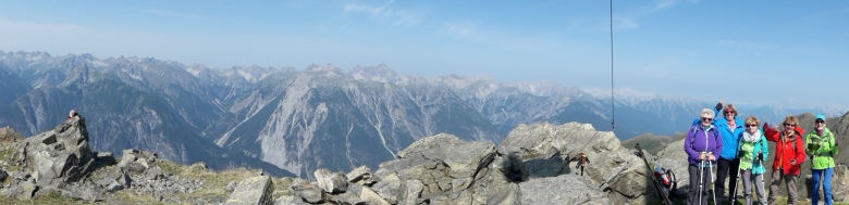 Die letzten Höhenmeter, auf weglosem Gelände, zum eigentlichen Gipfel sparen wir uns und machen ausgiebig Rast.
