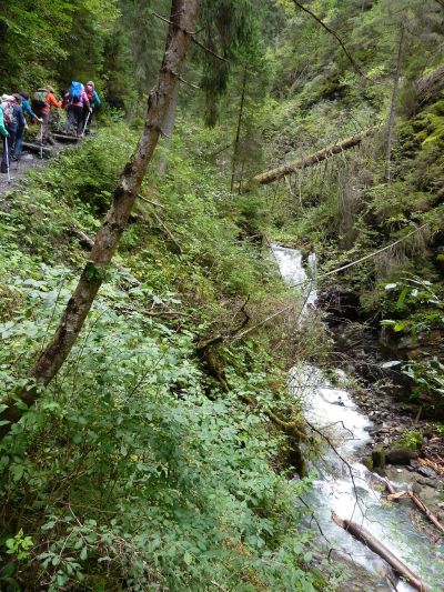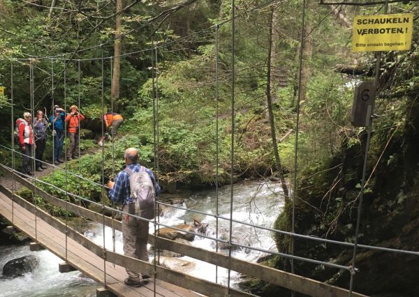Die fantastische Rundblicke der vergangenen Tage sind durch nichts mehr zu übertreffen, so dass wir bei der Abschlusswanderung durch die Radurschlklamm bei Pfunds ein völlig anderes Erlebnis in der Tiefe der Schlucht und die Einkehr in den „Berghof“ mit exzellenter Küche genossen.