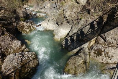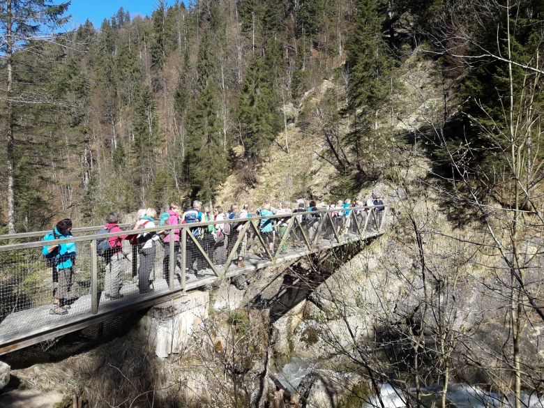 Vor dem Erreichen der Blumenwiesen überqueren wir die Weissach im Bereich der Buchenegger Wasserfälle.