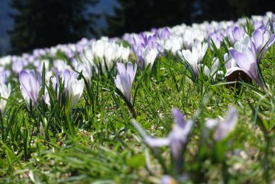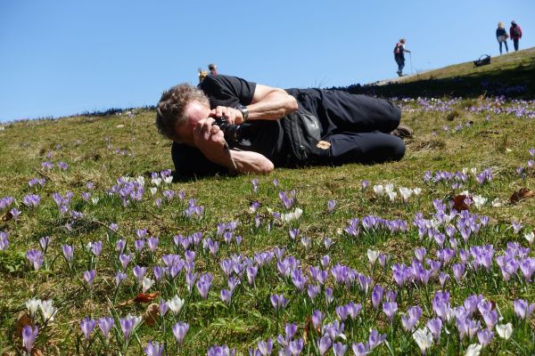 Bei den Krokuswiesen angekommen zückt jeder den Photoapparat um den besten Schnappschuss zu machen. Doch dies ist nicht ganz einfach denn Unmengen Menschen und Hunde tummeln sich am Wiesenrand.
