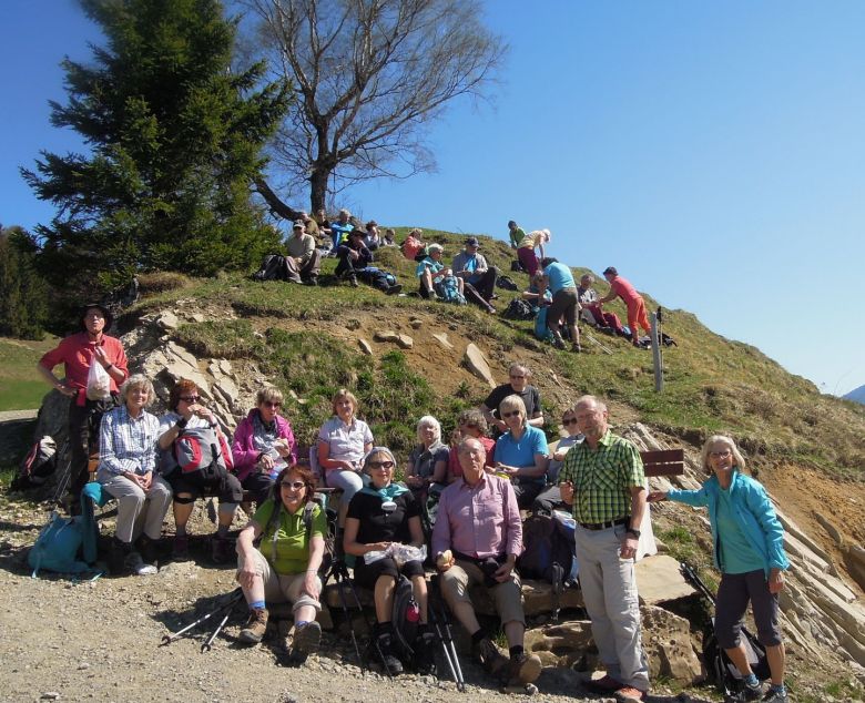 Auf dem weiteren Weg machen wir Rast in der Oberschwand Alpe. Wie immer wenn so ein Pulk gleichzeitig essen und trinken wollen kommt etwas Hektik auf.