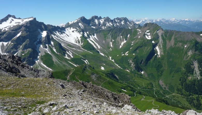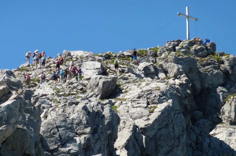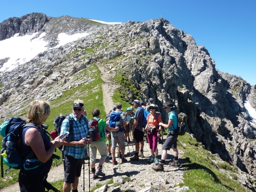 A und B Gruppe steuern mit dem Augstenberg dasselbe Ziel an. Die B-Gruppe nutzt jedoch die Seilbahn und spart damit ca. 400 Hm