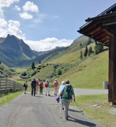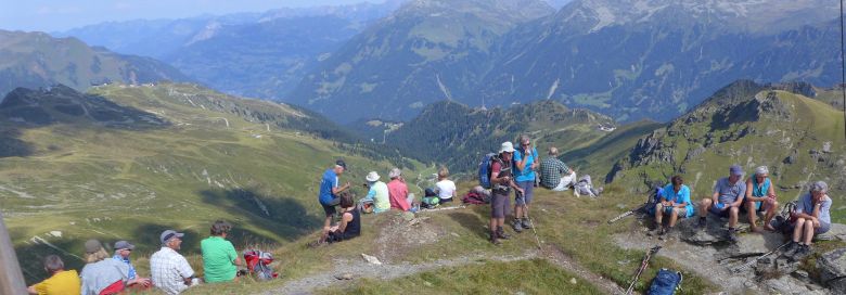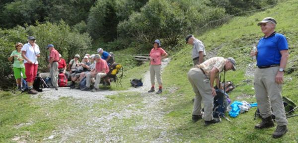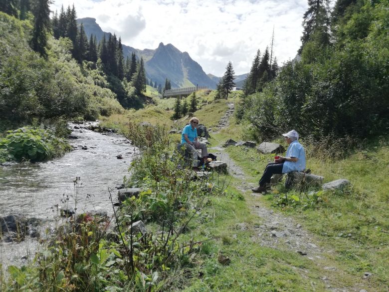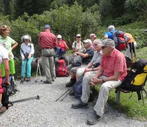 Auch die C-Gruppe geniesst die gute Sicht auf Zamangspitze, Hochjoch, Gantekopf und Versettla. Gerastet wird am Vermielbach und Nova Stoba.