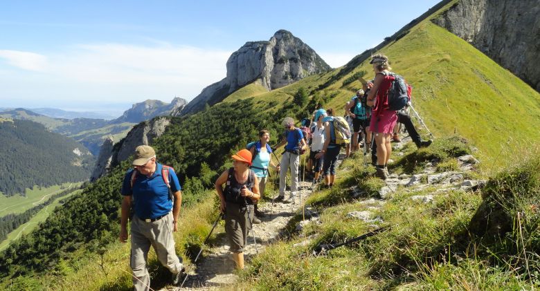 Wärend die A Gruppe die meisten Höhenmeter per Seilbahn überwindet startet die B-Gruppe im Tal und steigt beachtliche 900Hm auf.