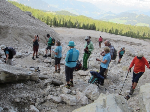Vom Wanderparkplatz bei Spescia dessot führt der Weg im Uhrzeigersinn Richtung "Grotta della Neve". Hier ist mit 2100m der höchste Punkt erreicht. Weiter geht es nach "Heiligkreuz"