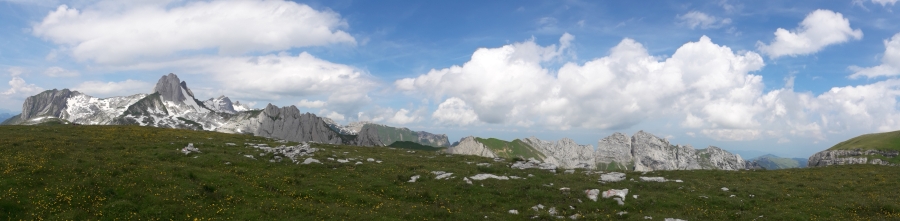 | Wegepunkte: | Wildhaus, Flürentobel, Alpe Tesel (1433), Alpe Grueb (1752), Mutschensattel, Mutschen (2122), Chreialpfirst, Zwinglipasshütte, Wildhaus | ||